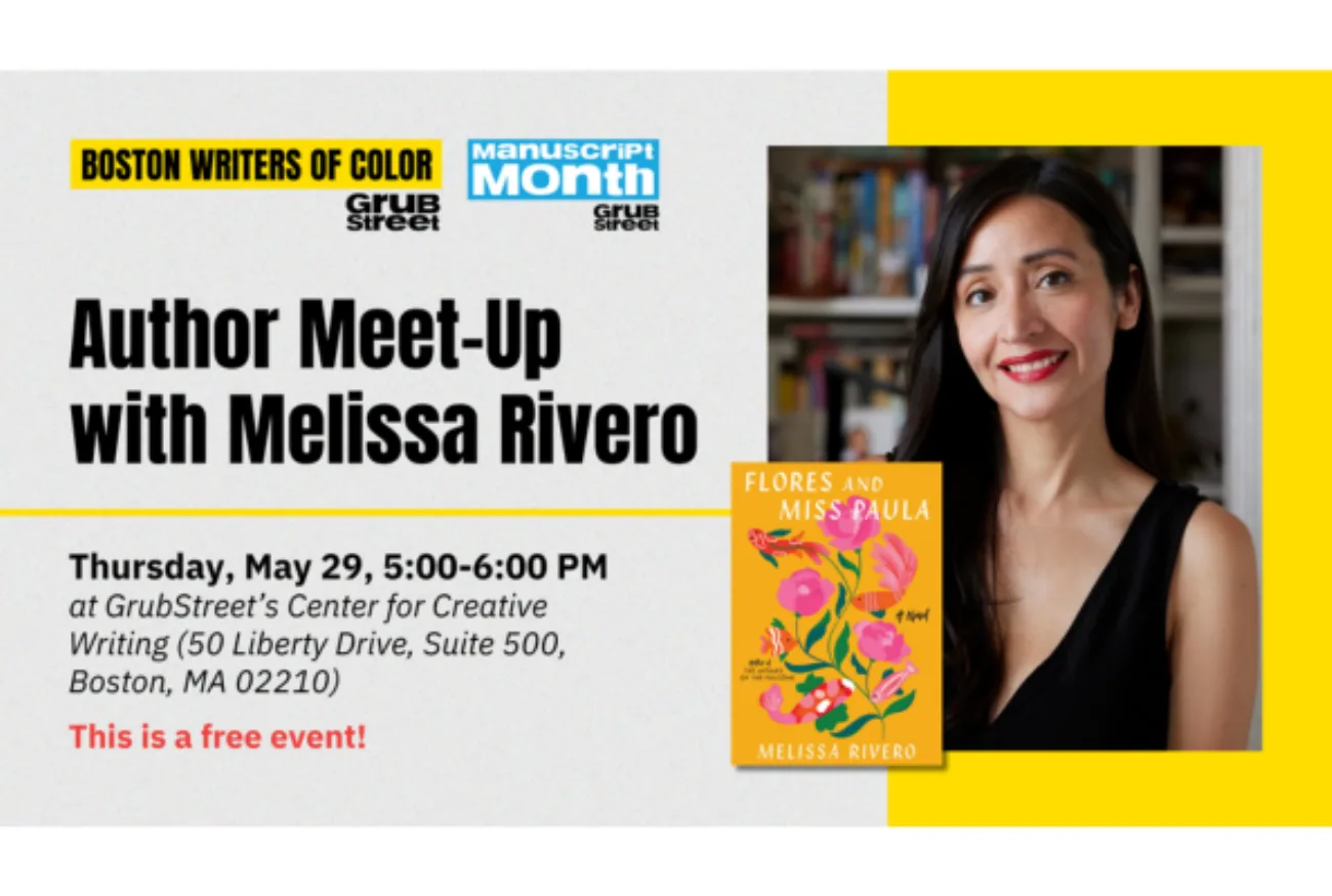 We’re excited to be hosting an in-person meet-up with Melissa Rivero, award-winning author of the critically acclaimed Flores and Miss Paula, on Thursday, May 29th, 5:00-6:00 PM at GrubStreet’s Seaport location.