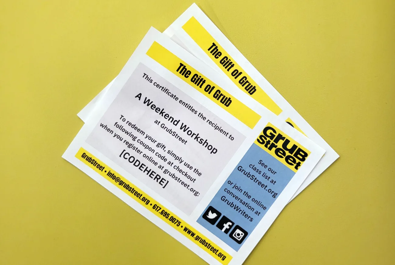 GrubStreet believes in making writing as accessible as possible. We offer scholarships and payment plans for all of our classes—don’t be shy, apply!