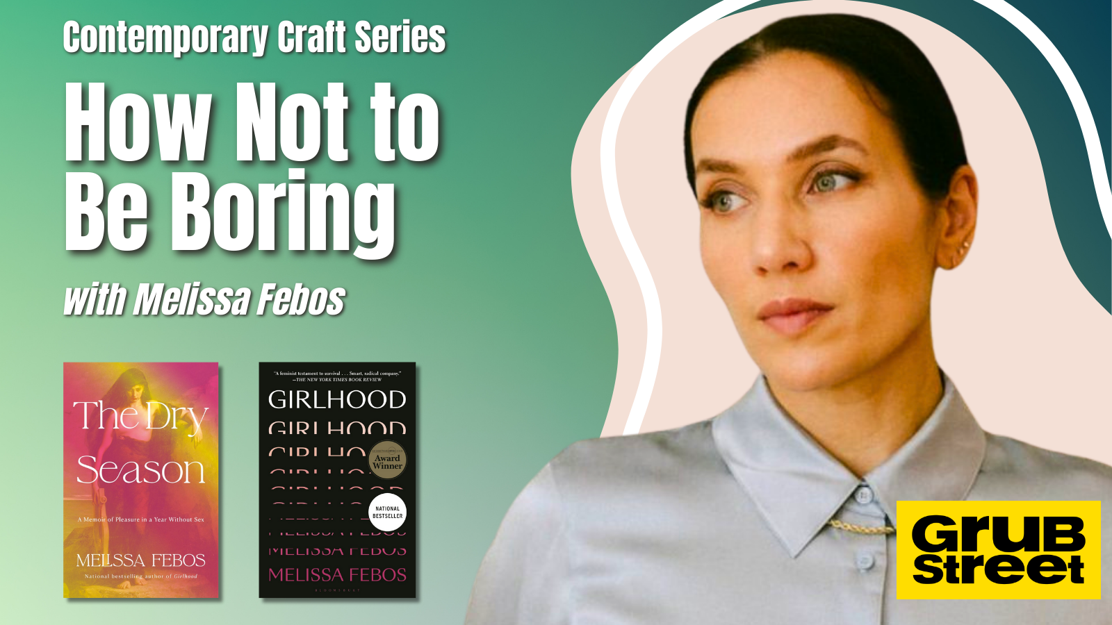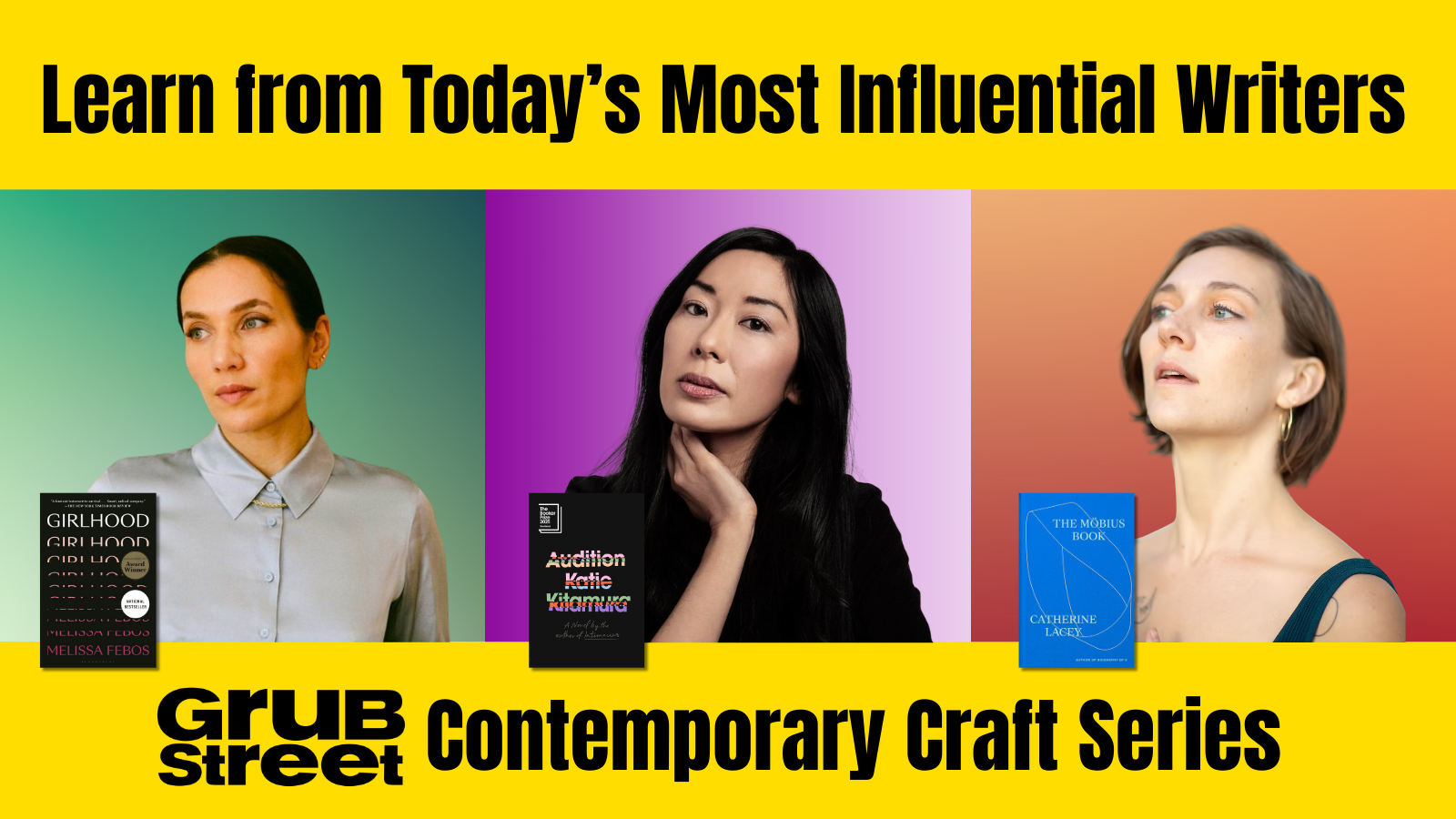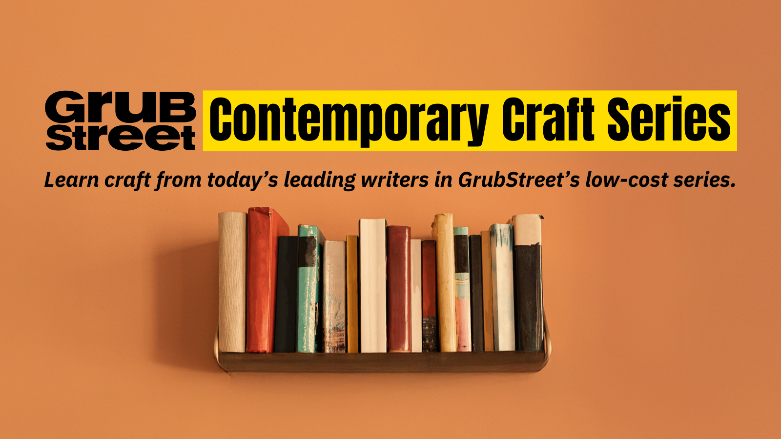 GrubStreet’s Contemporary Craft Series brings you low-cost opportunities to learn directly from some of the most influential voices in contemporary literature. Each live, online seminar focuses on a unique craft topic, includes Q&A, and offers fresh insights you can apply to your writing right away.