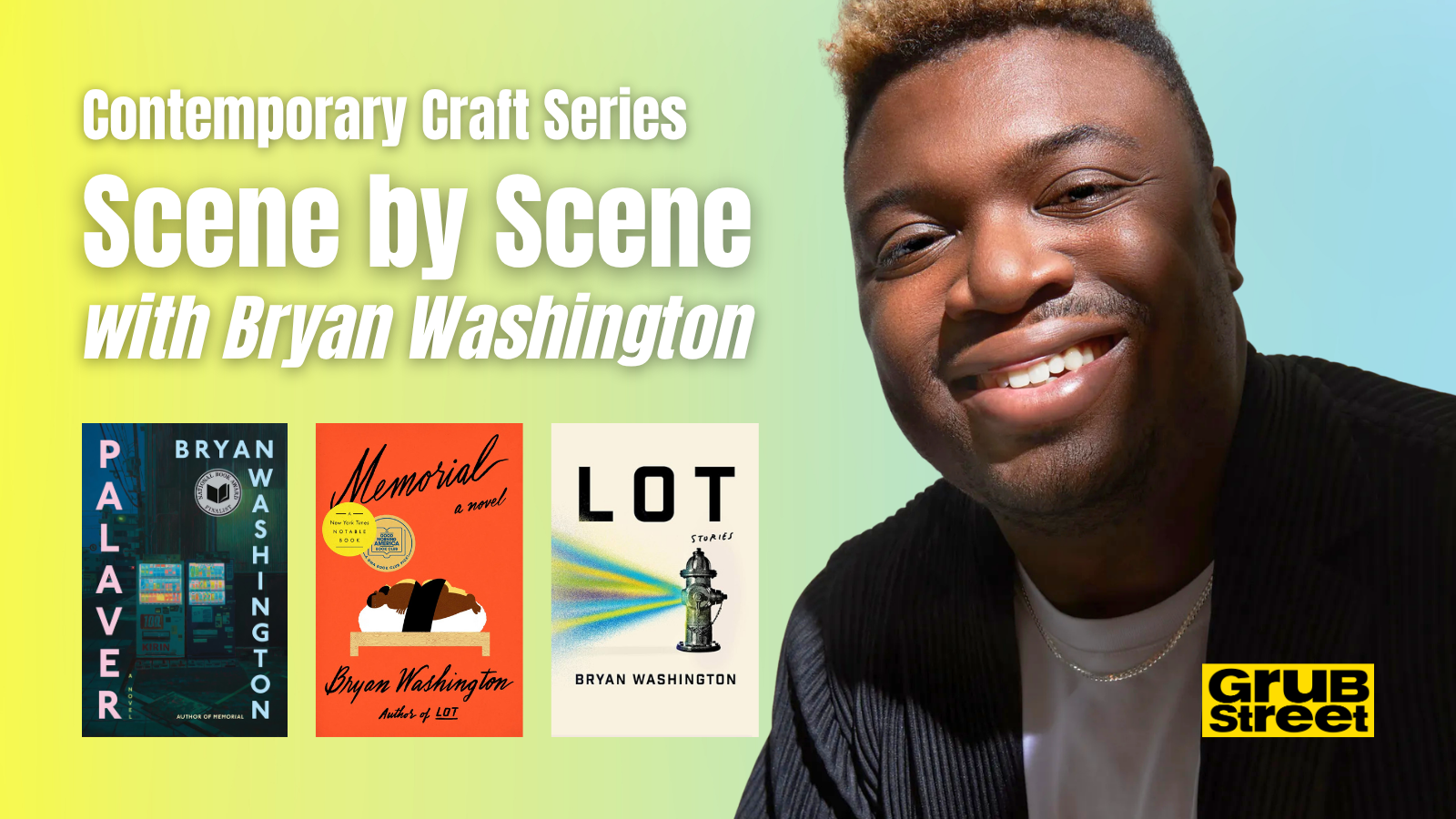 GrubStreet’s Contemporary Craft Series brings you low-cost opportunities to learn directly from some of the most influential voices in contemporary literature. Each live, online seminar focuses on a unique craft topic, includes Q&A, and offers fresh insights you can apply to your writing right away. Recent teaching authors have included Kaveh Akbar, Jennifer Haigh, Tony Tulathimutte, and Jonathan Escoffery.